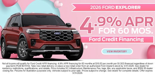 By calling Rock Hill Ford or submitting your information online, you consent to receiving communications from us via phone call, text message, email, or other electronic means including communications from our automated or AI assisted systems regarding your inquiry. You may opt out of these communications at any time by following the instructions provided in our communications.
